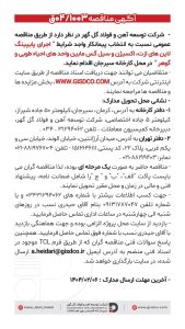 متقاضیان میتوانند جهت دریافت اسناد مناقصه به بخش مزایدهها و مناقصههای سایت اینترنتی این شرکت به آدرس WWW.GISDCO.COM مراجعه نمایند.