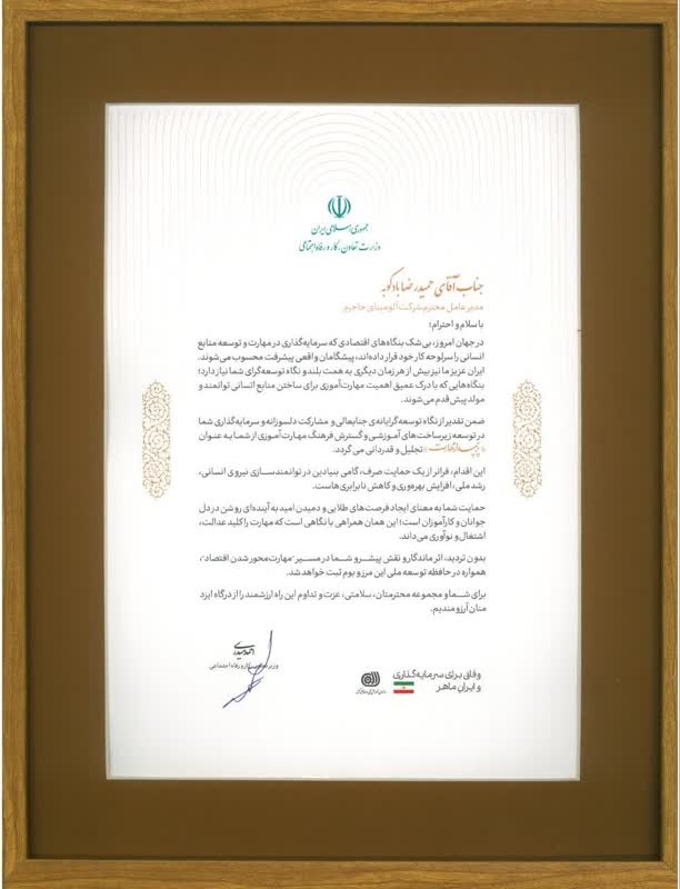 همزمان با اختتامیه جشنواره ملی مهارت از حمیدرضا بادکوبه، مدیرعامل و عضو محترم هیأت مدیره شرکت آلومینای ایران به عنوان حامی این جشنواره با حضور معاون اول رئیس جمهور تقدیر شد.