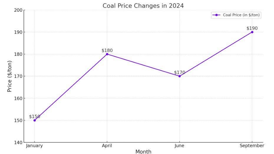 در نتیجه این افزایش تقاضا، قیمت زغالسنگ در ژانویه 2024 با رشد 20 درصدی نسبت به ماههای پایانی سال گذشته به حدود 150 دلار در هر تن رسید.
