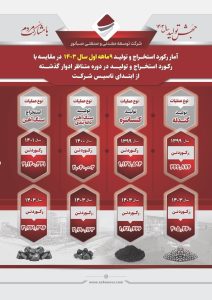 بر اساس آمار منتشر شده، این شرکت در مدت زمان مذکور توانسته است ۴۰۵.۲۶۰ تن گندله، ۱.۱۲۷.۵۴۹ تن کنسانتره و ۳.۲۶۱.۳۹۶ تن سنگ‌آهن را استخراج و تولید کند که این میزان تولید به‌طور چشمگیری افزایش یافته است.
