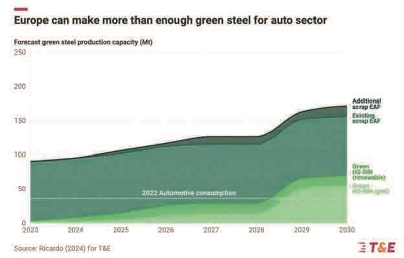 از سوی دیگر در این اکوسیستم جدید، «پایداری» از یک مزیت رقابتی به یک الزام استراتژیک تبدیل شده است. تولیدکنندگان خودروهای الکتریکی بهطور فزایندهای تأمینکنندگان خود، ازجمله فولادسازان را برای کاهش آلایندگیهای نهفته در مواد اولیه تحتفشار قرار میدهند. جنبش بهسوی فولاد سبز، با استفاده از انرژیهای تجدیدپذیر شتاب گرفته است. این جنبش در حال تبدیلشدن به یک واقعیت صنعتی است. پیشبینیها نشان میدهد که ظرفیت تولید فولاد سبز در اروپا بهسرعت در حال افزایش است و انتظار میرود تا سال ۲۰۲۹ از کل میزان مصرف سالانه بخش خودروسازی فراتر رود و تا سال ۲۰۳۰ به میزان قابلتوجهی بیشتر از تقاضای این بخش باشد.