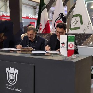 مراسم امضای تفاهم‌نامه فروش ۳۰ هزار تن ریل برای سه محور اصلی کشور با حضور اردشیر افضلی، مدیرعامل ذوب‌آهن اصفهان و خطیبی، نماینده شرکت ساخت و توسعه زیربناهای حمل و نقل ریلی کشور، در حاشیه نمایشگاه ملی فولاد ایران در غرفه ذوب آهن برگزار شد.